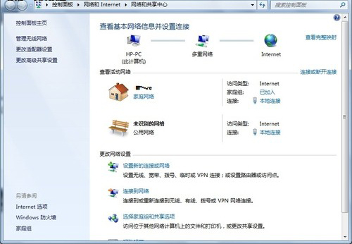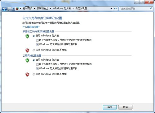 若win7和XP、Vista等不同系统间的共享,首先需要关闭家庭网络防火墙,否则,XP、Vista系统无法看到Windows7的共享文件。关闭家庭网络防火墙的设置方法如下: