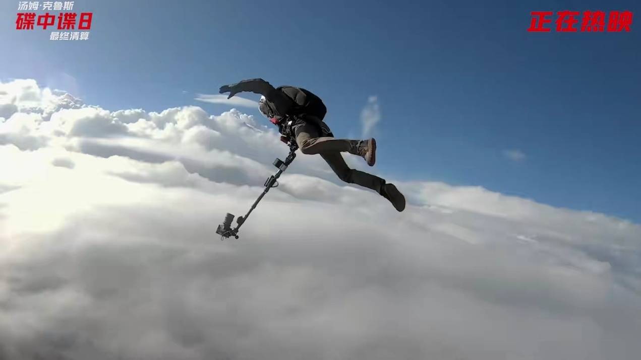 好在他是经验丰富的制片人,对于拍摄各个环节了如指掌,一边跳伞,一边表演,一边掌镜都由他一人完成。